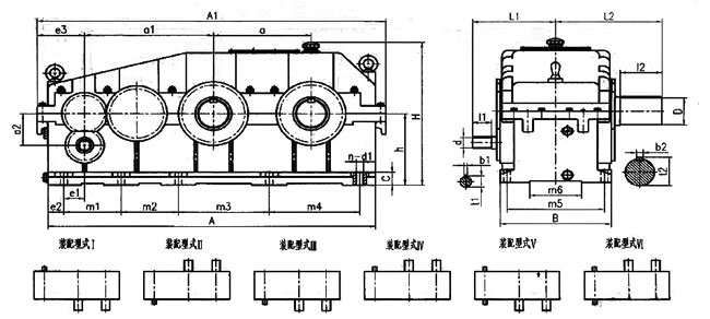 型號(hào) | a | a1 | a2 | A | A1 | B | H | h | n | d1 | C | e1 | e2 | e3 | m6 |